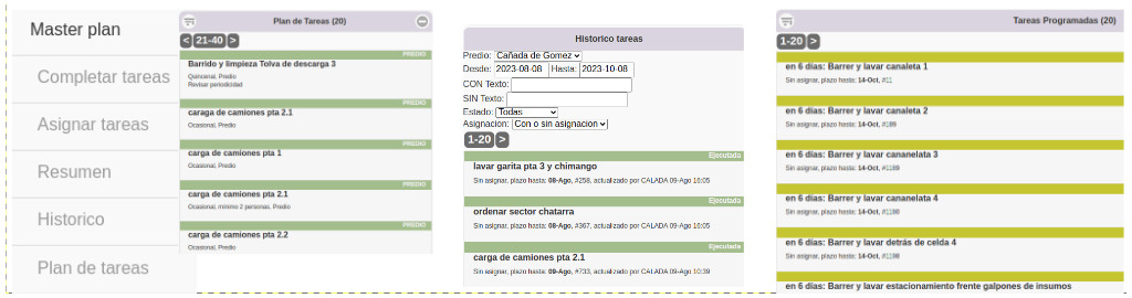 - Lista calendario de tareas pendientes por asignar y por completar.